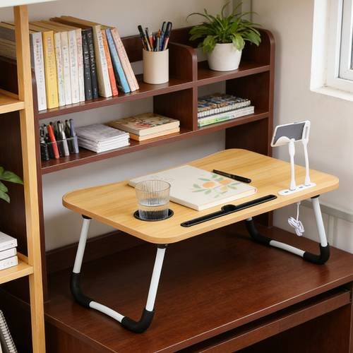 Wood Laptop Stand Table Foldable Desk Computer Study Bed Adjustable Cup Slot Tray/linght and Fan
