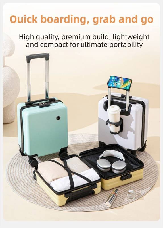 Travel smarter and lighter with our Mini Carry-on Suitcase, specifically designed to meet the strict size requirements of budget airlines. Crafted from a durable ABS+PC hybrid shell, this compact luggage is incredibly tough yet lightweight at only 2kg. Whether you are looking for a simple boarding case or our upgraded model with an integrated cup holder and phone stand, this suitcase ensures a seamless travel experience for both children and adults.